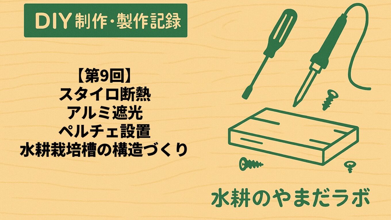 新着記事News 【第9回】水耕栽培槽DIY|スタイロ断熱とペルチェの取付け記録2025.10.09DIY制作・製作記録 【第8回】水耕栽培槽DIY|木製フレームの組み立て記録(後編)2025.10.02DIY制作・製作記録 第7回|水耕栽培槽DIY|木製フレームの組み立て記録(前編)2025.09.25DIY制作・製作記録 DIY制作・製作記録 Uncategorized 検証・テスト 設計・部品選定 雑記・日誌・裏話人気記事Popular Postやまだ たろう栽培×電子工作×DIYブロガーProfileこんにちは、やまだです。 趣味で電子工作や水耕栽培をしています。 木工DIYはほぼ初心者で、電動工具はちょっと怖いのでホームセンターでカットしてもらったり、紙やすりで地道に削ったりしています。 このブログでは、「つくって育てる暮らし」をテーマに、気になったことを考えて、試して、記録することを続けています。 専門家ではありませんが、試行錯誤の過程を残すことで、自分なりの育て方や工夫が見えてくるのが面白いと感じています。 コメントなどで、そっと感想を残していただけたらうれしいです。プロフィールを読むXInstagramYouTube